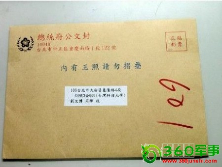 收到“马总统”的签名玉照一张~吼吼~~厚颜无耻地直接写信给总统府马英九,说喜欢他,要签名照。果然,三天后收到了回信和签名玉照,还附上了福袋一个~激动吖,今天是签名日吗?